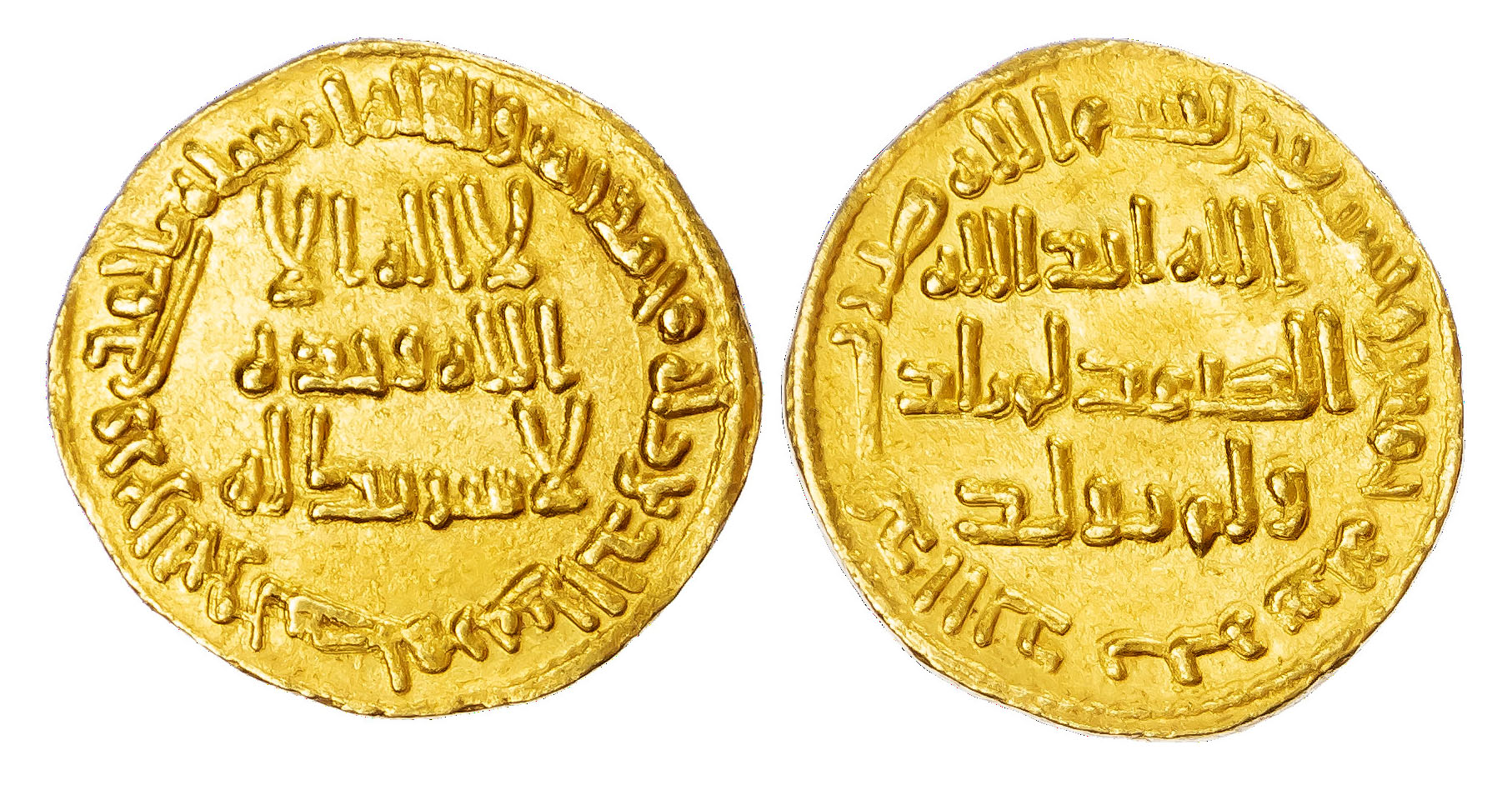 I only have 1 dated medieval coin, the Umayyad Gold Dinar of al-Walid I, one of the things it says on the reverse of the coin is ""In the Name of Allah this dinar was struck in the year six and ninety".