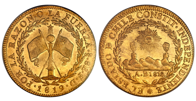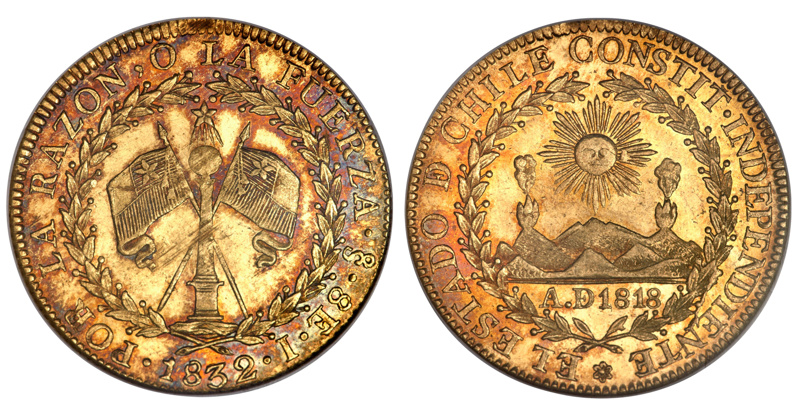 Chile, 8 Escudos, 1832, NGC-64, ex-Eliasberg