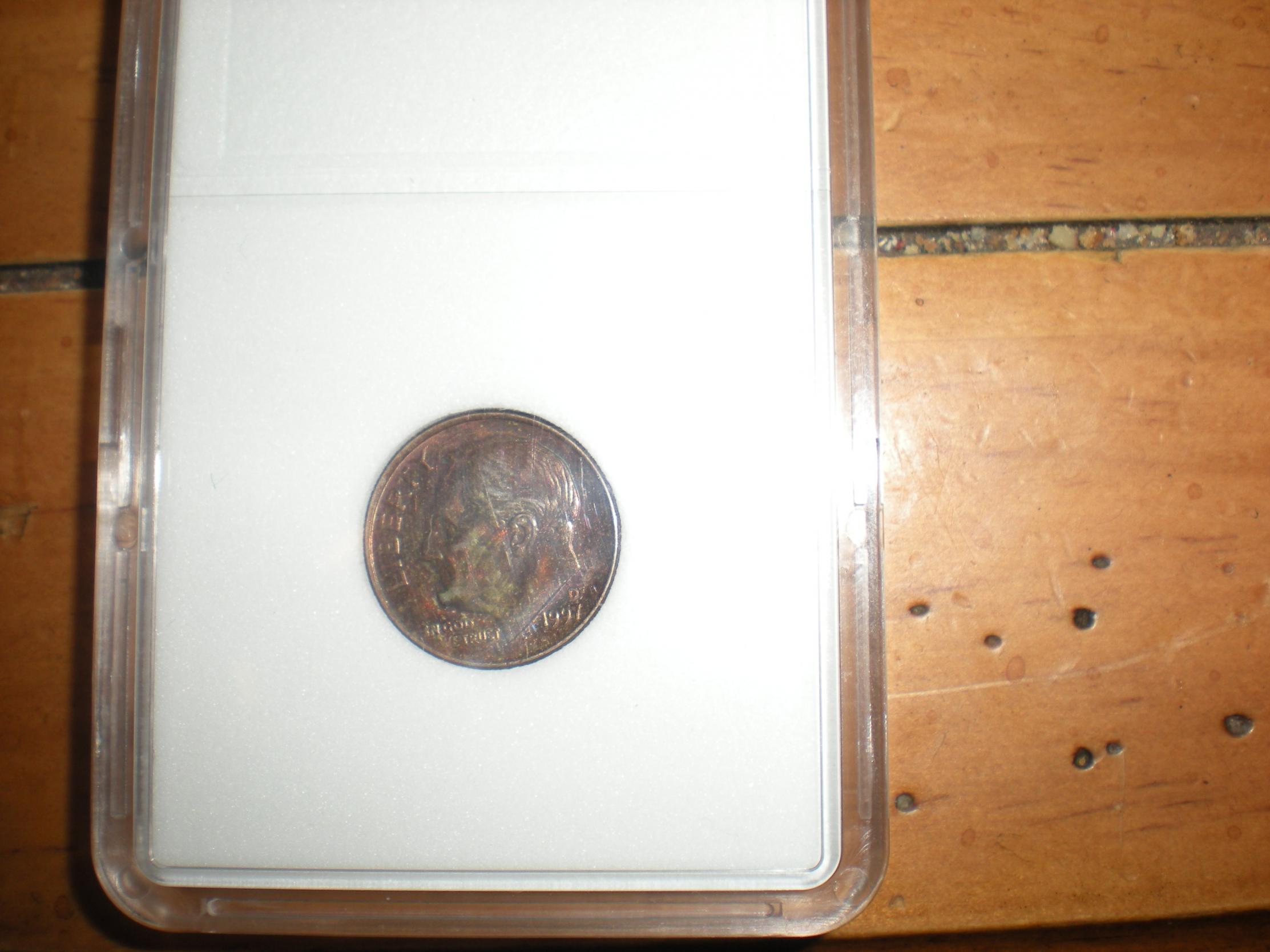 My sister found this while at work: http://i54.tinypic.com/156tg6f.jpg http://i51.tinypic.com/wqlxh.jpg http://i52.tinypic.com/oz154.jpg It's a 2008 D dime. The heads side is clearly made out of nickel, but when you flip it over the tails side looks like copper. When I look at it on the side it looks almost fully copper, I can't see any nickel-copper-nickel layers. Also, on the heads side at the top of his head around the edge it looks like the nickel is flaking off revealing a tiny bit of copper underneath. Is it an error coin? What would it be called?