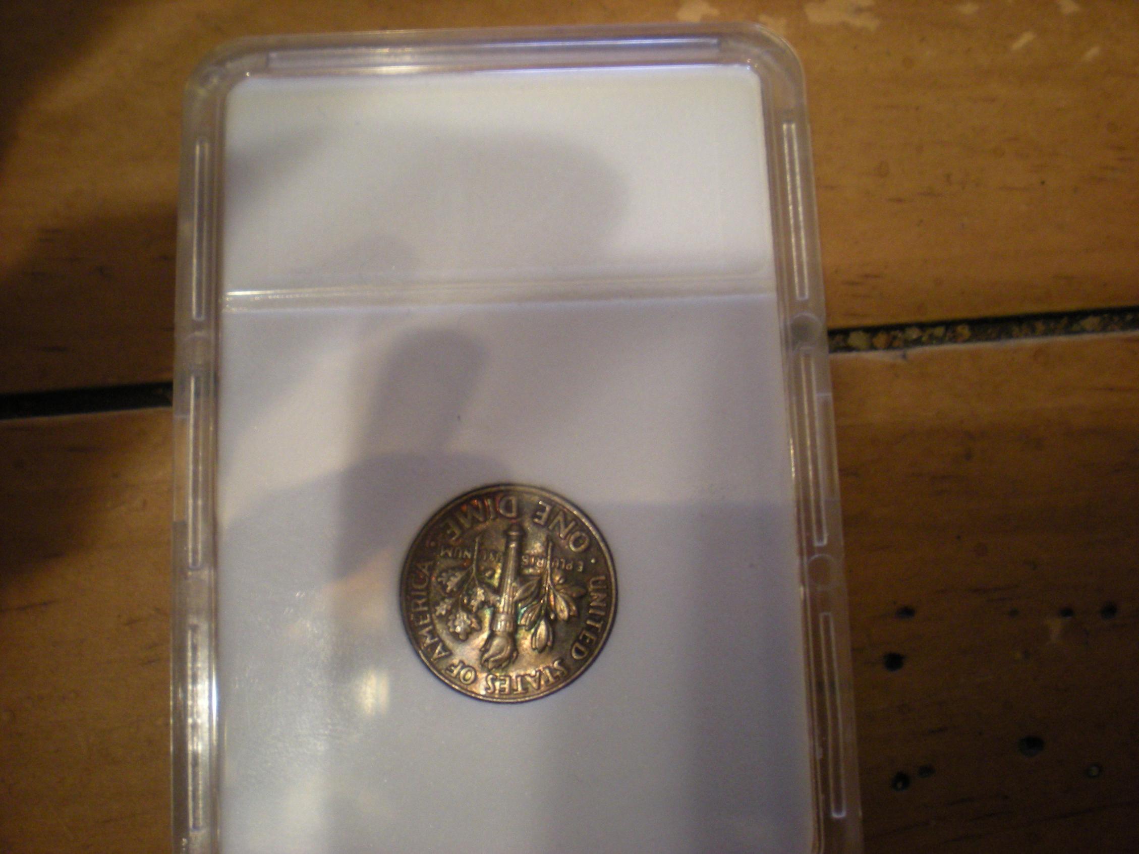 Throw that baby on a scale. Weigh it, see if its different from a regular dime. Dimes do tone like that often.