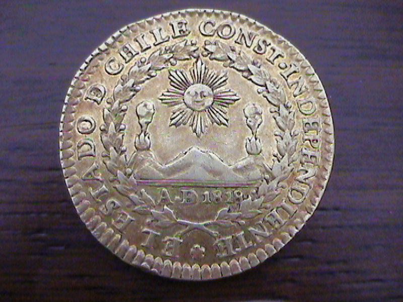 These are chilean coins from the early 19th century - a peso dated 1818, a real dated 1834,
