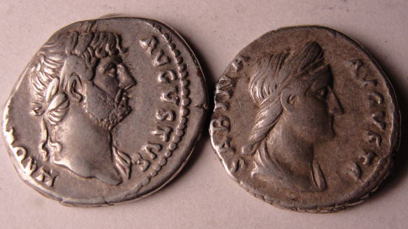 I been working on Women of Ancients. I just picked up a Sabina and Hadrain coins. So i thought i would start a thread on him and her. Any two coins, Husband and wife. Gold, Silver bronze, or one of each. post them up..Love to see them.. Hadrain Ar Denarius...125-128 AD.. Ob. Laureate bust right, drapery on left shoulder. Rev. Spes advancing left, flower upward in right hand, raising skirt left.. Rome Mint 16mm x 3.44g.. Sabina.. AR..Denarius ..128- 136..AD..( wife of Hadrian)..(Grand niece of Trajan) Ob. Diademed and Draped head right.. Rev. Juno standing left, holding patera and sceptre.. Rome..Mint 17mm x 3.17g