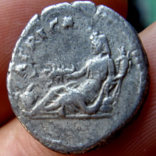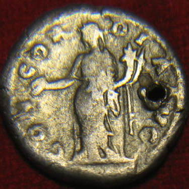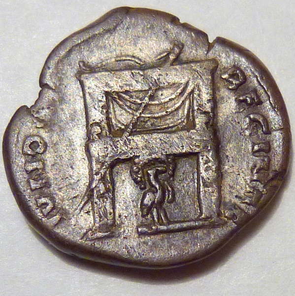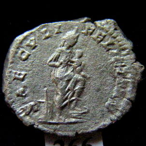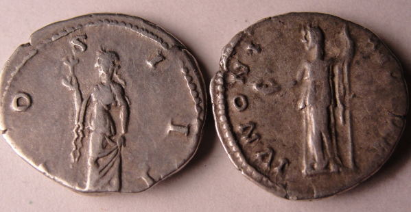 Julia Domna AR Denarius OBV: IVLIA AVGVSTA, draped bust right REV: SAECVLI FELICITAS, Isis, wearing polos on head, standing right, left foot on prow, holding Horus; behind, rudder Struck at Rome, 200 AD 2.37 grs, 19mm RIC 577 Septimius Severus AR Denarius OBV: SEVERVS PIVS AVG, laureate head right REV: FVNDATOR PACIS, Septimius, togate and veiled, standing left holding olive branch Struck at Rome, 202-210 AD 3.3g, 18mm RIC 265
