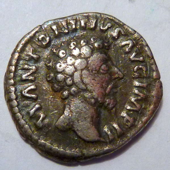Lucilla AR Denarius OBV: LVCILLA AVGVSTA, draped bust right REV: PVDICITIA, Pudicitia seated left, veiled & holding hand on breast Struck at Rome, 165-69 AD 2.5g, 18.5mm RIC 781 Lucius Verus AR Denarius OBV: L VERVS AVG ARM PARTH MAX, laureate head right REV: FORT RED TR P VIII IMP V, Fortuna seated left, holding rudder & cornucopiae. COS III in ex. Struck at Rome, Feb to Dec, 168 AD 2.5g, 19mm RIC 586 (Marcus Aurelius)