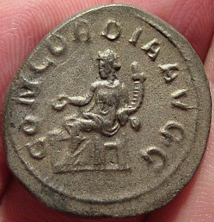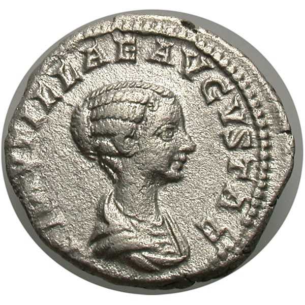 Plautilla AR Denarius OBV: PLAVTILLAE AVGVSTAE, draped bust right REV: CONCORDIAE AETERNAE, Plautilla & Caracalla clasping hands Struck at Rome, 202 AD 2.83g, 18mm RIC 361 Caracalla AR Denarius OBV: ANTONINVS PIVS AVG BRIT, laureate head right REV: P M TR P XIIII COS III P P, Pax running left holding branch & scepter Struck at Rome, 211 AD 3.11 grams, 18mm RIC 184