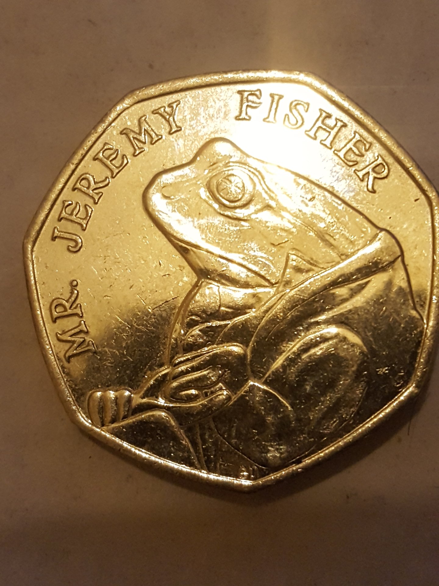 And most likely refers to the image on the rev of the coin. I know the UK did a series of coins based on the Beatrix Potter characters. And I agree with it being a strike through.