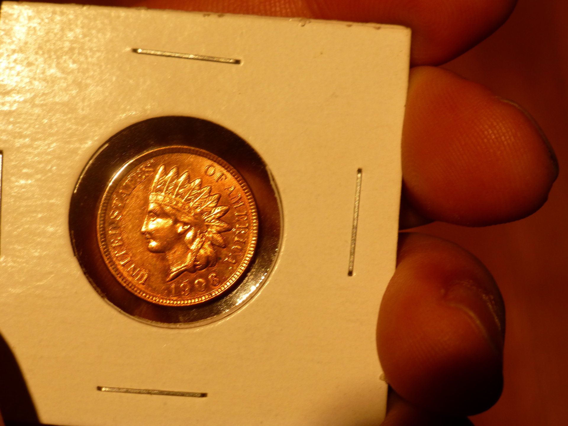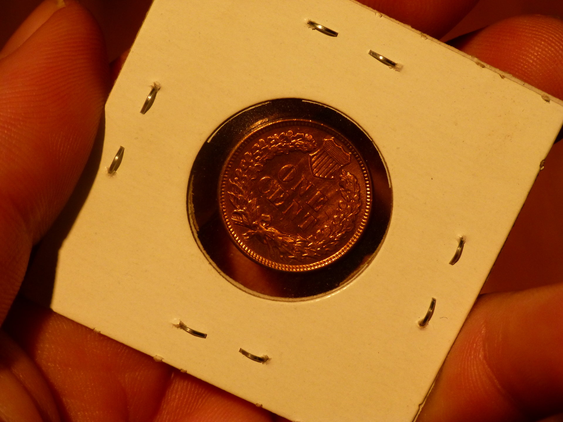 Hello Friends, Requesting a little help I picked this coin up recently. It appears either AU or MS, but a friend thinks it could be an Indian Proof strike. It is kind or orange-y / red, very lustrous. Does not look like the MS Indian I have.. though perhaps it has been doctored? I tried to take some representative photos, it is hard to capture in 2D how it looks in hand. Would love to hear others thoughts. Best, G.L.