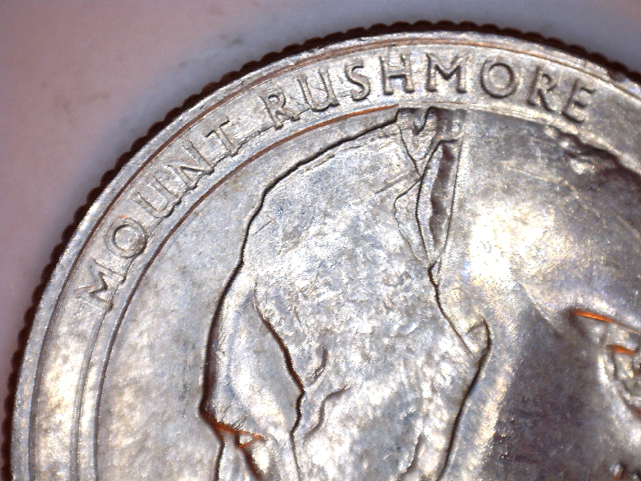 the ring around the obverse of the rushmore. so thats wrapping machine damage?