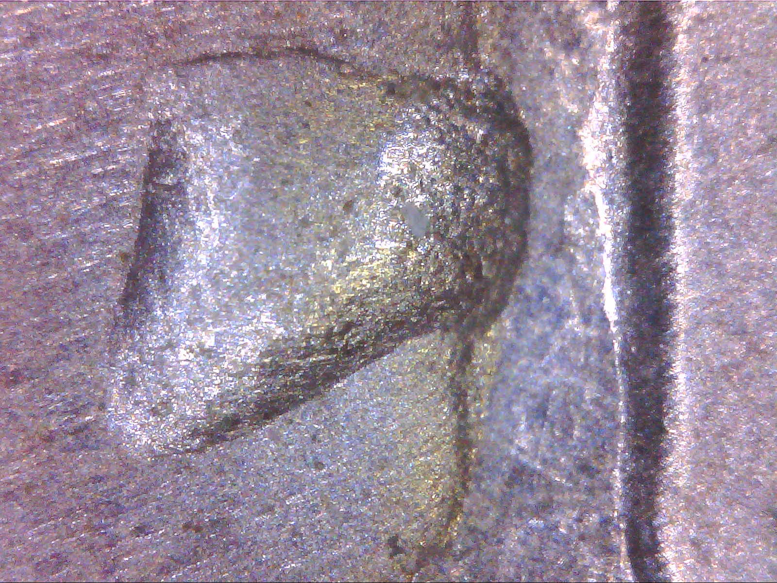 I'd like to see a better close-up of the indentation next to the "I". I don't see any indication of "crater effect" so it could be a strikethrough. Chris