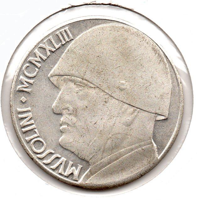 Mussolini on a coin...A Fantasy issue? But who's fantasy? Picked this up several years ago. Don't know much about it. Origins or purpose I mean. Here's some hard facts: 1943, 20 Lire 17.5000g 0.6000ag 0.3858oz 35.2mm Reverse is based on the KM#70 issue