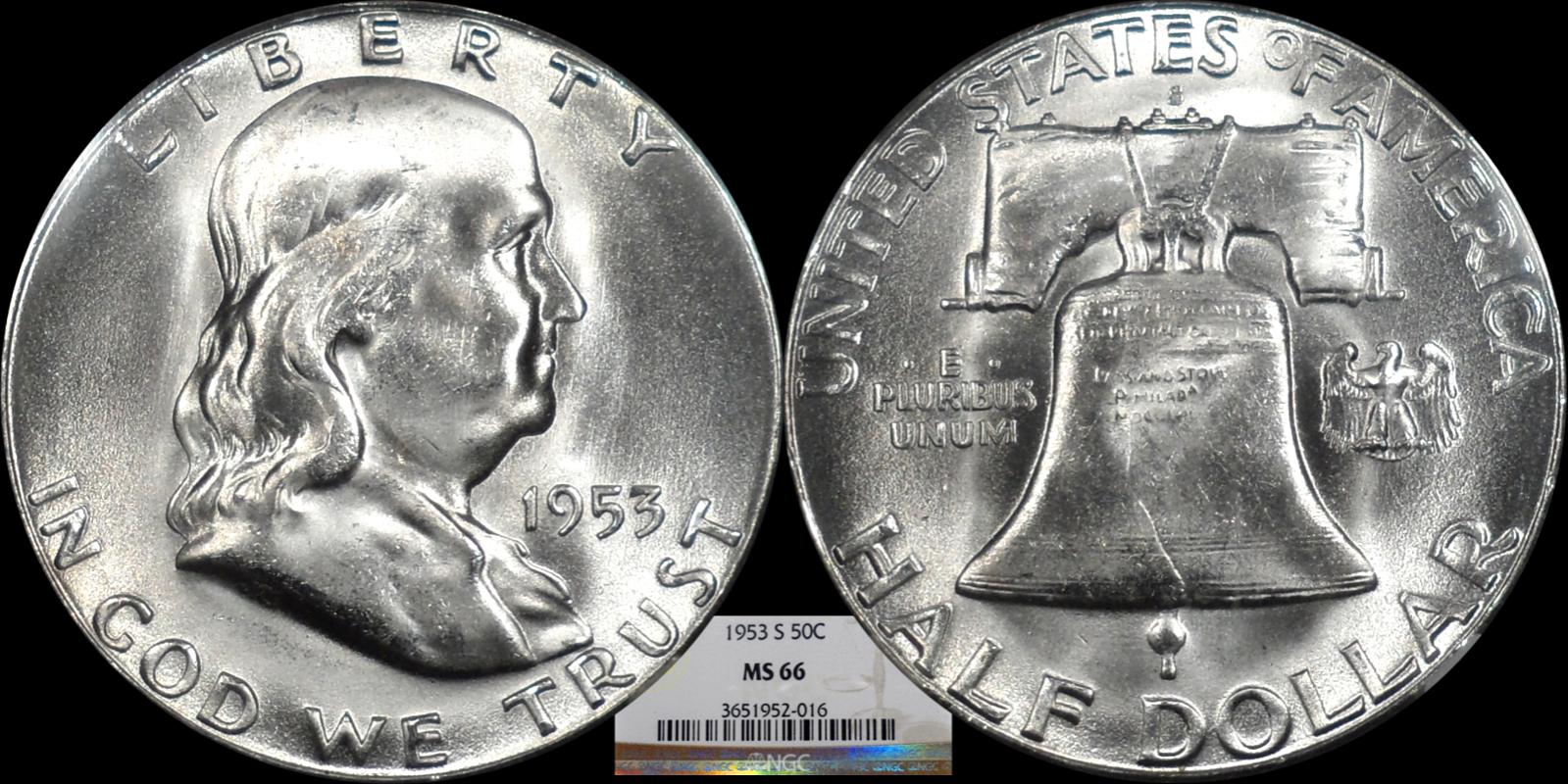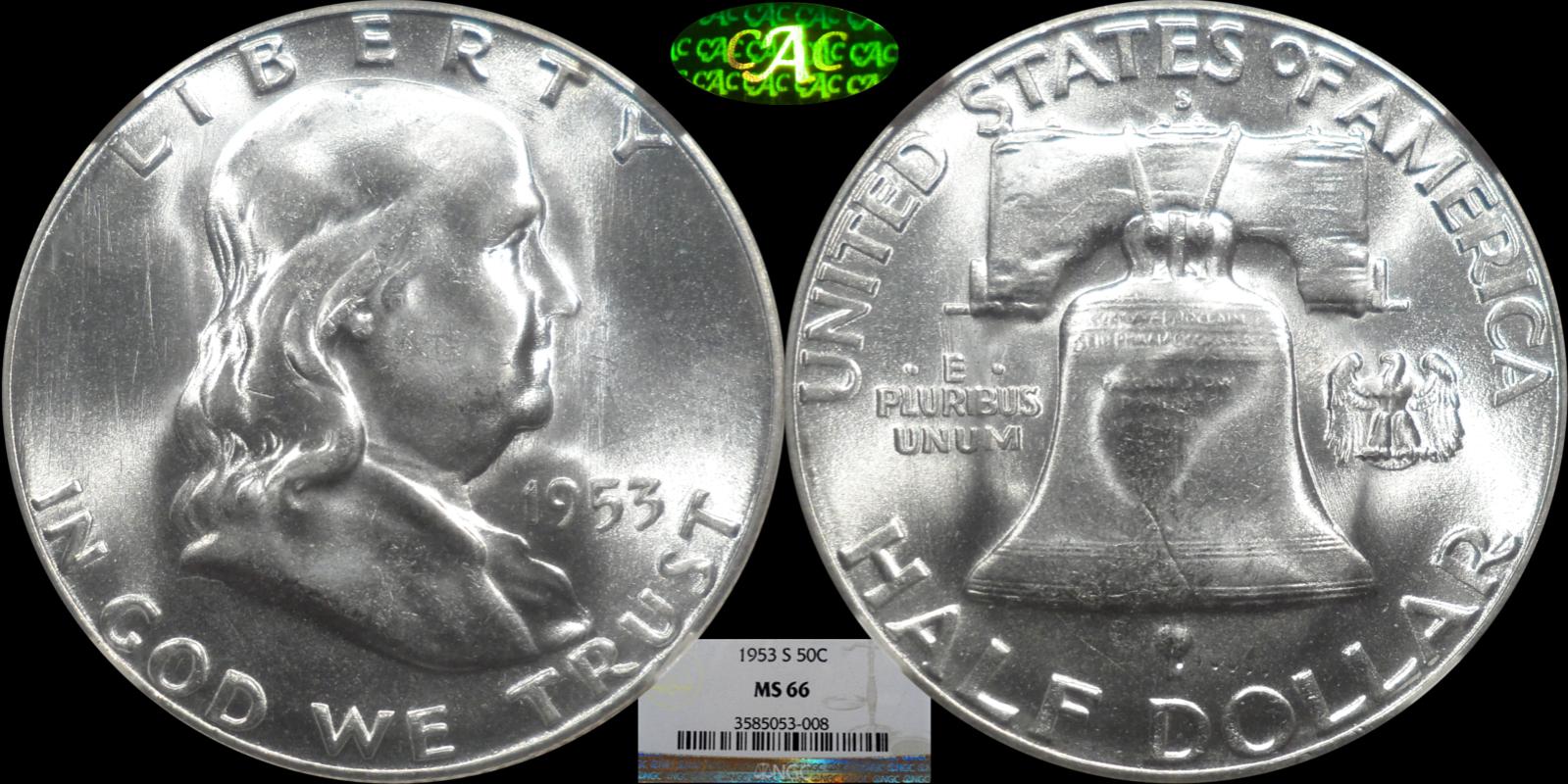 bsowa - Don't make the mistake of paying much attention to the price on this coin. Forget the price and look at the coin. I say that because price on a '53-S Frankie in 66 can vary from under $150 to over $1,100.