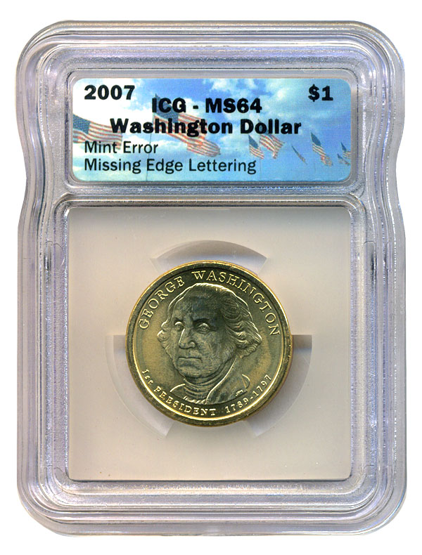 add to that I got it for 1/3 of list and closest I could find in price was $65 in an anacs slab so I real happy I bid the $30 even if I didn't expect to win 2007 George Washington no edge lettering in MS64 Planned on waiting until the price came down a bit but a good snipe on the bay works just as well Darn it ICG!!!! I always reverse it lol (and in the title too of course)