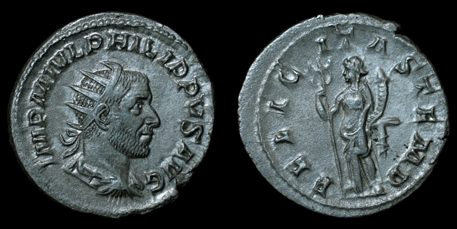 Elagabalus, Caracalla, Gordian III, Philip I Cool coin Ripley I like the ones with peacocks, I have an Antoninianus of Salonina with that type of Juno reverse, and I have the Faustina Sr. Denarius with nothing but a peacock standing on a sceptre 'CONSECRATIO' reverse, I really like the one with just the peacock by itself reverse, and hope to get a higher grade one than what I have. Ripley I think you have seen my nicest Antoninianii.... the different Elagabalus and Caracalla ones in my thread: Here is the thread: The Elag with the Roma seated holding Victory reverse with the titles 'PM TR P COS PP' showing that it was struck his first year, 218 AD is my favorite of them all I think.... but I also really like my Caracalla ones. Here is a link to the thread to see my favorite Antoninianii of Elagabalus and Caracalla: http://www.cointalk.com/showthread.php?t=163849&p=1133568#post1133568 as far as some of my favorites of different emperors, well here is my all-time fave of Gordian III, it has an interesting portrait that almost looks like Balbinus kinda.... but certainly doesn't look the way Gordian III did in most his portraits., sadly he has a little ear nick. The reverse is just amazing on it as well.... I had trouble with the pics since I didn't want to take it out of the 2x2. The pic is big so you have to click it twice to see fullsize in it's own window. And my second favorite Gordian III is this VICTORIA AETERNA rev, partly because of how large and nice the flan is, and how amazingly well centered it is.... it weighs 5.10 grams, and the first one, the VICTORIA AUG Antoninianus weighs 5.49 Grams. I also really like this third picture, of the next emperor, Philip I.... it was the first quality Silver Roman coin I bought ever. FELICITAS TEMP, with a weight of 4.51gr