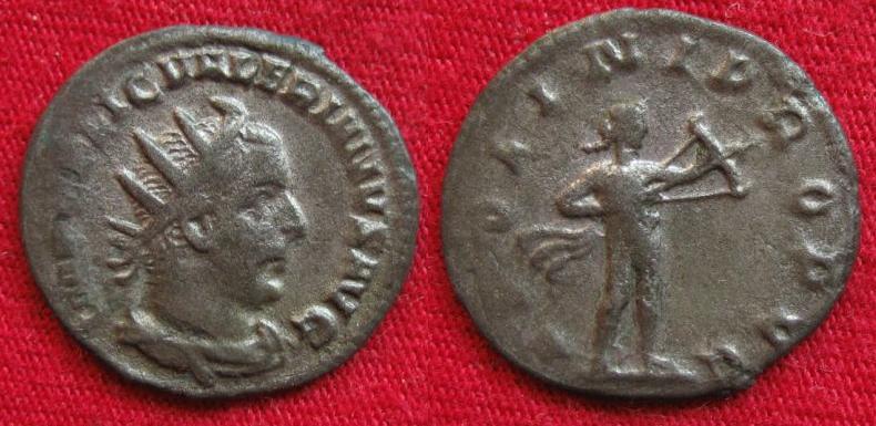 Later 3rd Century - Valerian et cetera Great ones Cuc. I of course love the DIVO CARO one... struck in such nice silver and quality that it resembles the DIVO series of Emperor Decius. I also really like the frontal busts of the two above.... This is a period I am not too familioar with the coinage of..... when it comes to coins minted after the death of Valerian and then Gallienus, I have little interest, but I do like the design of some, like yours Cucumbor. This first one is another beautiful portrait of Elagabalus from 218 - 222 AD. The next ones are of Valerian, the one ' RESTITUT GENER HUMANI' translates basically to 'RESTORER OF THE HUMAN RACE'. One of my favorite Valerian coins, a pretty cool and interesting reverse, I like it more than the 'Restorer of the Orient, or any of the other reverses like that of his. ------------------------------------------ ------------------------------------------ Emperor Valerian I (253 - 260 AD) AR Antoninianus obv: IMP C P LIC VALERIANUS AUG - Radiate bust right, draped and cuirassed. Seen from the front. rev: RESTITUT GENER HUMANI - (Restorer of the Human Race) - Valerian wearing radiate crown, walking right, holding globe and raising right hand. 4.20grams Moesia (Viminacium) mint, AD 254-255. Cohen 179 ***( I am not so sure about this being from the Vimiinacium mint, I don't know which mint it is from.) ------------------------------------------ ------------------------------------------ I think this next (third pic) is my favorite of Valerian, APOLINI PROPUG and it has Apollo drawing a bow, which looks like a crossbow in this example. I think it is from the Rome mint.... but this period in history they began using several mints for the Antoninianii, and I am not good with telling the difference with Valerian and family coins. ------------------------------------------ ------------------------------------------ Emperor Valerian I (253-260 AD) AR Antoninianus. Struck 253 AD. Rome Mint. obv: IMP C P LIC VALERIANVS AVG - Radiate, draped and cuirassed bust right. Seen from the front. rev: APOLINI PROPVG - Apollo standing right, drawing bow. Weight: 3.0 grams RIC 74, RSC 25a ------------------------------------------ ------------------------------------------ This last two photos (fourth and fifth pics) are of a coin of Empress Salonina. Again, unsure of mint. I love the reverse detail, aside from a slightly flat face on Juno, it's very well struck, the peacock looks quite well.... and aside from a couple small deposits, the obv is great too, lots of detail on the bust, and well centered, as well as looking like fairly good silver for the time period. ------ Ancient Roman Empire Empress Julia Cornelia Salonina, Wife of Roman Emperor Gallienus (253 - 268 A.D.) Silver Antoninianus - obv: SALONINA AUG - Diademed and draped bust right, seated on a crescent. rev: JUNO REGINA - Juno standing facing left holding a patera and sceptre. Peacock to left, star in left field. -------------------------------------------