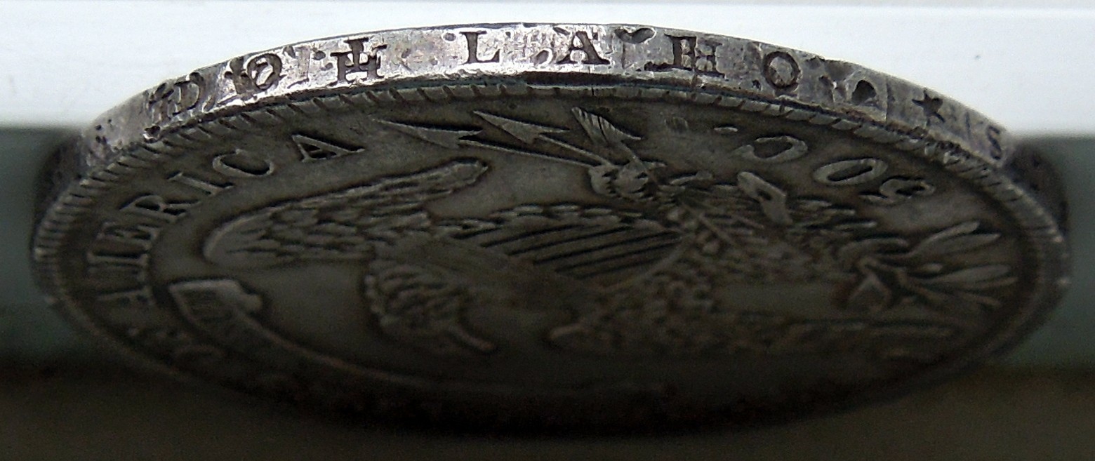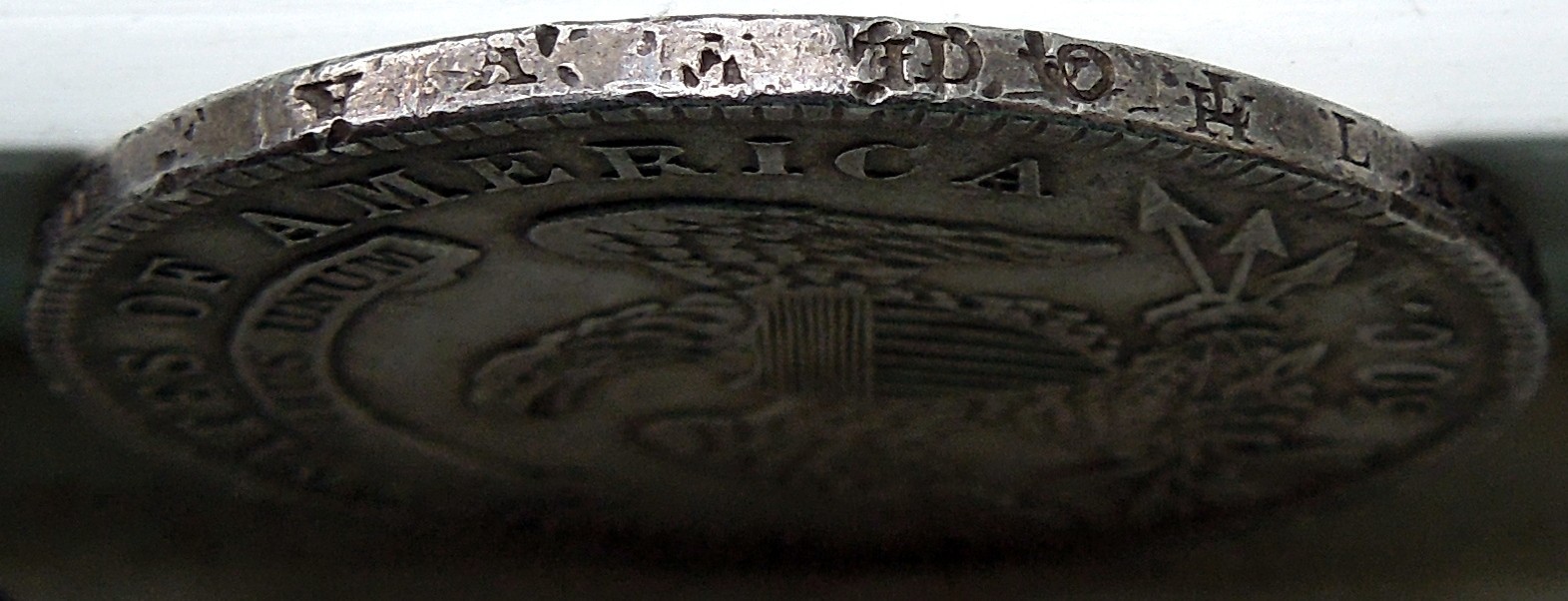 The seller had provided one fuzzy pic of the edge and mentioned it was an error, but my Overton variety book described what I suspected it was. Neat how the word FIFTY is written upsidedown over itself. I have a few more pics of the edge. It shows all the lettering then you can flip the coin over and read it all again, stamped over itself. I've never seen it before.