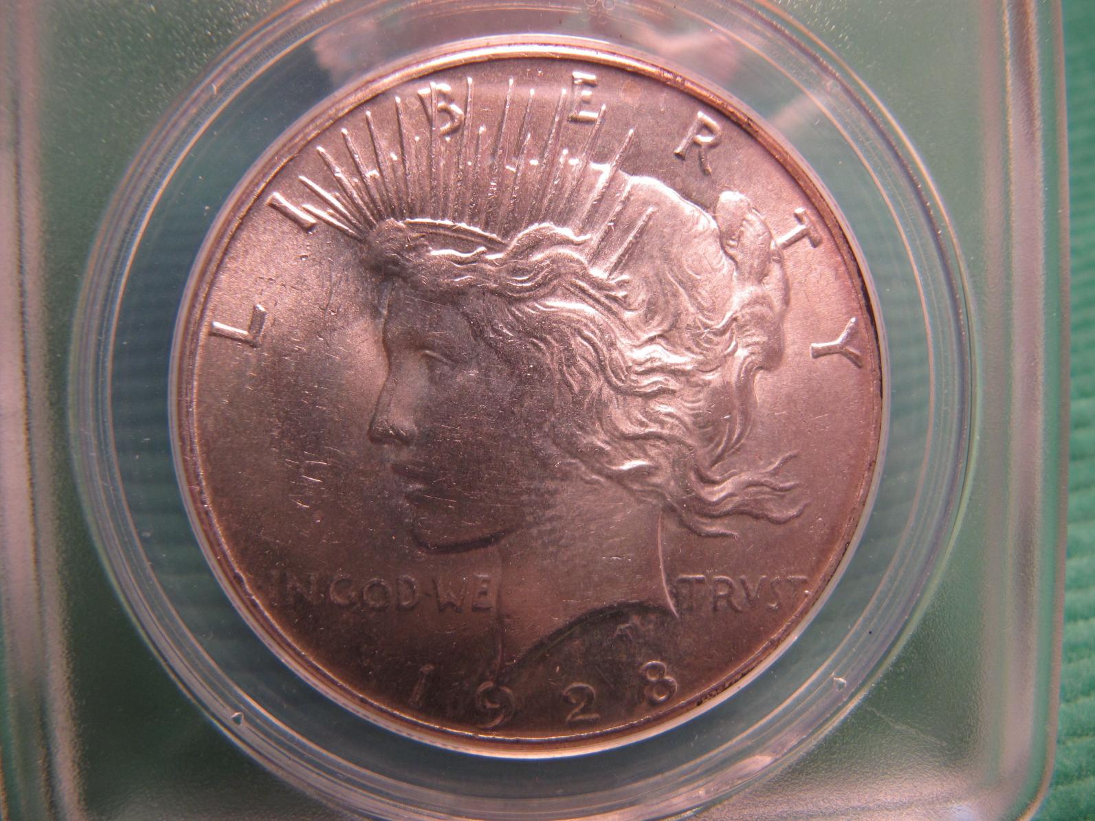 I sent in 9 coins to ANACS for grading. I went thru the ANA beginning grading class so I know just enough to be dangerous. Anyway...I've attached pics of 2 of the Peace dollars. They graded the 1921 a 63 and the 1928 a 60. The pictures aren't great...the obverse of both coins is bright silver. The coins were in a dansco? folder for 50 years so they aren't great but they aren't horrible either. I thought for a 60 the coin had to be truly ugly with no redeeming quality. (I didn't think this coin was horrible). For the 63, I just don't see that many marks on it. What are your opinions of the coins? Did ANACS get them right? Thanks for your help.