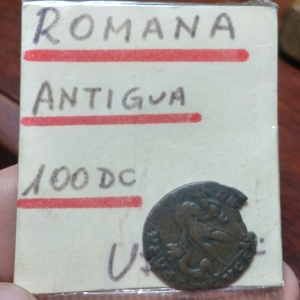 I keep not only my first coin since 1992, also the tag!... Its a Magnus Maximus AE2, REPARATIO REIPVBLICAE type grom Lugdunum, 2nd officinae: The tag is obviously completely incorrect: It reads (in english): ANCIENT ROMAN, 100 AD