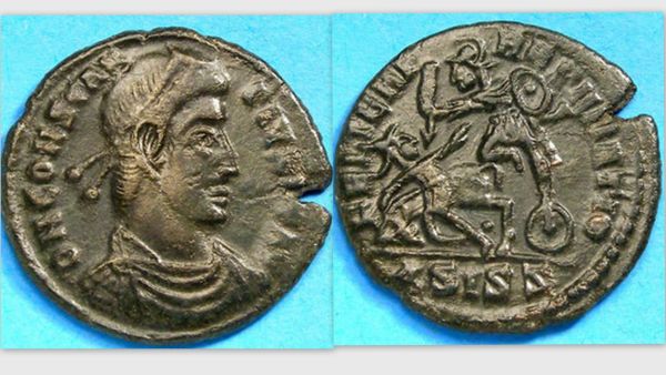 Here is an example of one of mine from Siscia with ASIS Zigzag mintmark. Yours looks like a dot before SIS