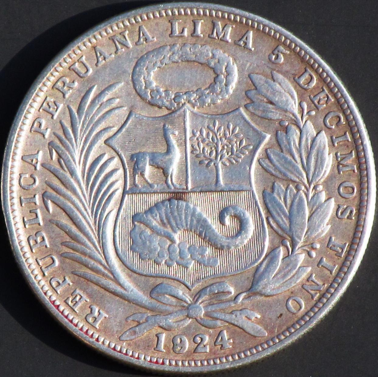 KM 218.1 1924 Peru SOL (small letters).jpg KM 218.1 1924 Peru SOL (small letters) rev.jpg