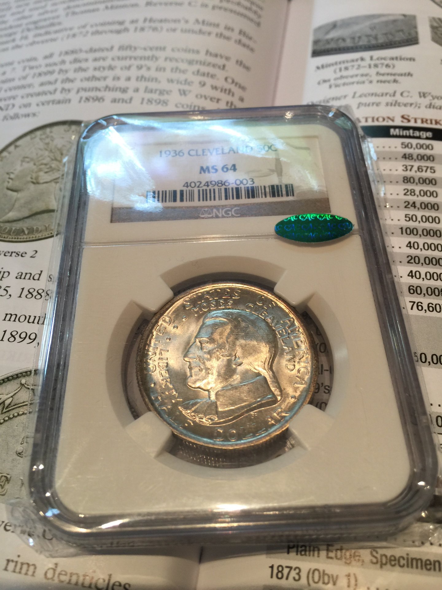 Check it out: my latest U.S. Commem. Cleveland 1936 and not only is it an MS 64 it has the famous CAC green football sticker! It shall be released!