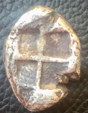 It's today that I acquired my first Electrum. Though I posted before, the coin wasn't mine at that time. It weighs 13.27 g. There's a sheep heading left on obverse. Four incuses on the reverse. I recall that Electrum was a natural alloy of gold and silver which was used to struck the first coins in History. The proportion of gold or silver in not stable. It could vary from 1 to 99 %. So it's like white gold unless the proportion of gold is very high, maybe over 80 or 90 %. Hope it's genuine. Here are my own photos.