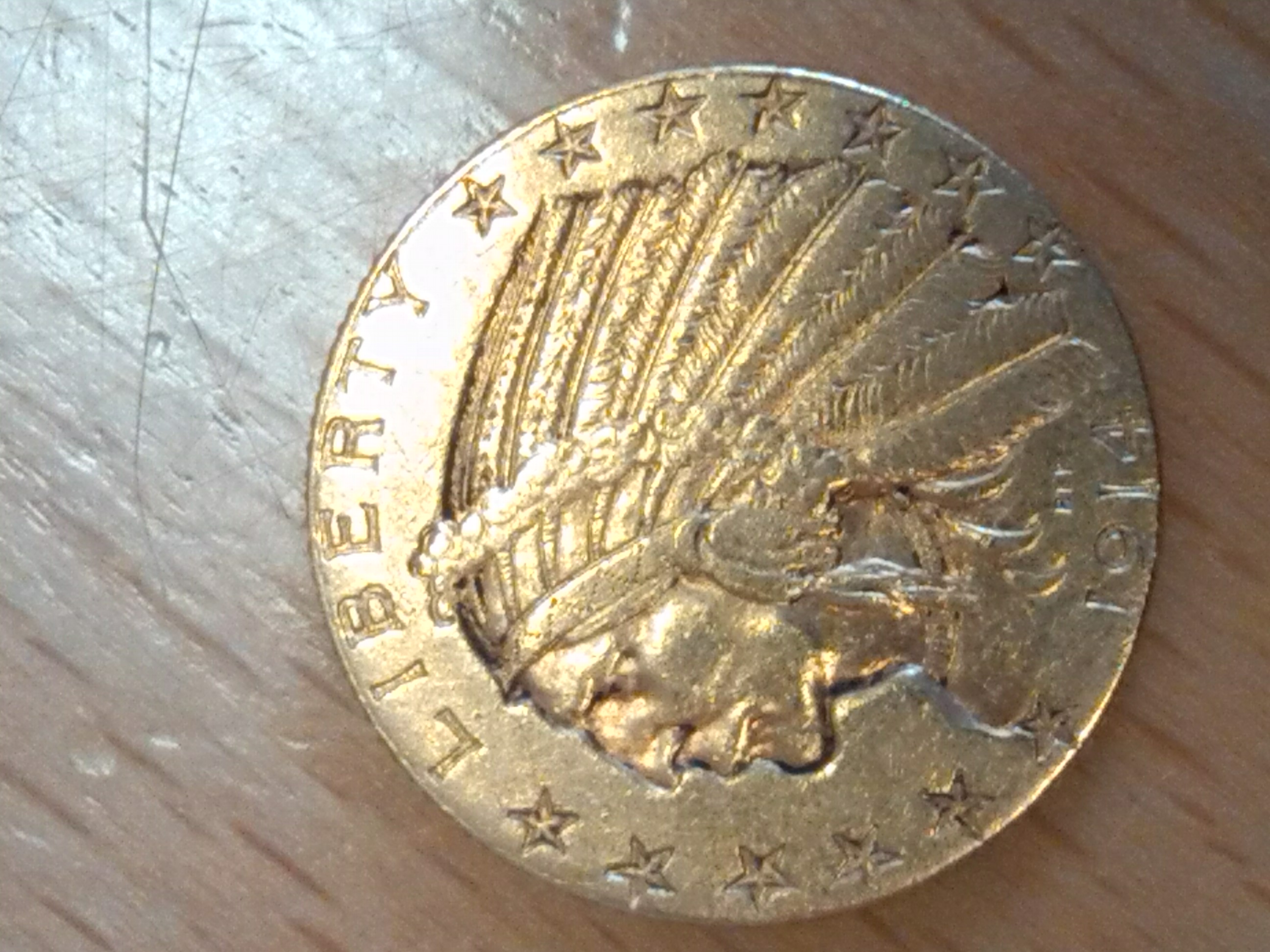 Is it at least 90% gold? It is a nice looking coin and I just picked one up from my local dealer raw yesterday, a 1914 none the less. Would make a great golf ball marker.