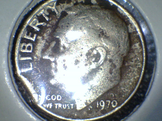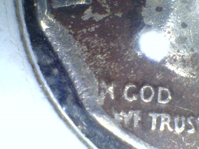 it looks like someone has been testing this coin with a knife. it is supposed to have a copper core and I don't see any copper in the clip looking area. do you see any copper ?