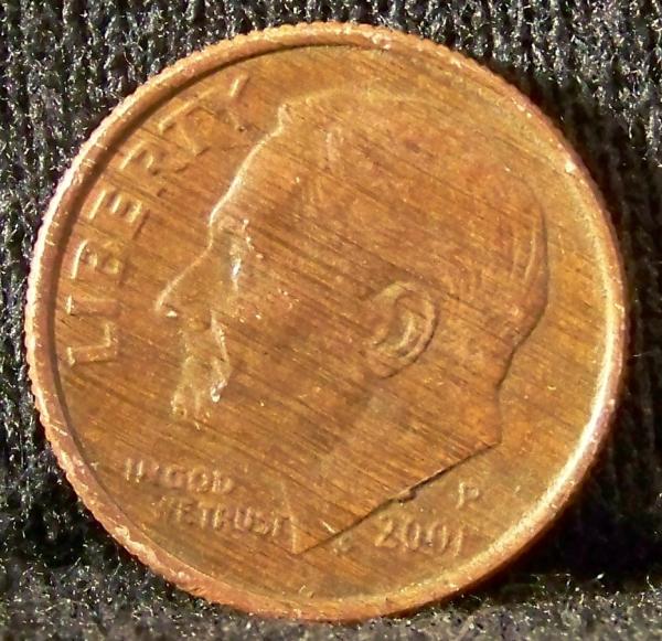 I have gotten some opinions on this 2001p dime.The color is much darker in hand-deep color like an old penny yet it has some shine to it,you can't even make out the lines on the obverse without magnification. I believe it has multiple errors including a planchet error,improper annealing and multiple die chips.What do you all think? also any idea of value would be greatly appreciated.Thanks in advance for sharing your knowledge.