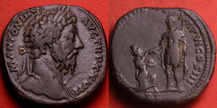 @dougsmit, thanks for your wish! I hope that either I have enough money someday, or live long enough, or both, to buy a hundred more sestertii -- along with all the other kinds of coins I might want to buy. All other things being equal, I would certainly also have preferred one with the RESTITVTOR ITALIAE portion of the reverse legend visible. But I thought the nice obverse portrait, and the relatively low price, made up for its absence. Also, there were only two other examples for sale on VCoins in which that part of the reverse legend was visible at all: The first one was $70 more than mine, and in general I didn't like it as much as mine anyway. (Among other things, the green patch on Marcus's shoulder looks like there's a pit under it.) The second one was 500 euros, and although it's very nice, the RESTITVTOR barely shows, and the price was way more than I was willing to spend. Of course I could have been patient and waited for the perfect combination of quality and price to come along, but I had no interest in doing that! Besides, in looking at all the other examples in the CNG archives -- and there weren't all that many to begin with -- it appeared to me that for whatever reason, examples with that part of the reverse legend either absent or barely readable comprise the substantial majority of these coins. So I might have been waiting a long time.