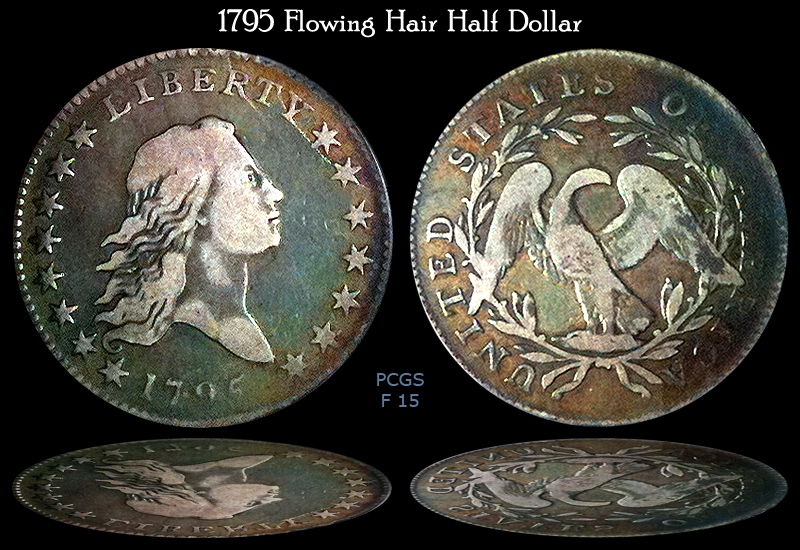 I just wanted to share my U.S. Half Dollar Type Collection. I have been working on this collection for a few years -- and as some of you know, I have a passion for coins with interesting colors or toning patterns, so when I could find a colorfully toned example of a type, I made the leap. I knew the Flowing Hair Half Dollar was going to be a stumbling block. The Flowing Hair Half was the first Half Dollar type minted in the U.S and was only produced for two years: 1794 and 1795. It sports the "Small Eagle" reverse, a design that Ben Franklin complained looked more like a turkey than an eagle. According to the Guide Book of U.S. Type Coins, only between 3,500 and 6,000 Flowing Hair Half Dollars remain in existence -- so this is a very rare type coin. I never thought I would attempt to acquire this early Half Dollar; but then, last month, I saw a Good condition 1795 sell for a bit over $1000 at an auction. I mean it was ugly and torn up and didn't want to bid on it, but it peaked my interest. When I started seriously looking for a Flowing Hair Half, I was surprised how many examples were really unattractive (with many having the look of being improperly cleaned or just beat up in general). I certainly never thought I would find a beautiful Flowing Hair Half that was colorfully toned, had eye appeal, graded by PCGS, and was at a price I could afford. So when I stumbled on this newly-listed PCGS-graded F15 Flowing Hair Half with an interesting green & reddish-tan coloration, I knew I had to pull the trigger, even if it did stretch my budget right to its limit. In any case, this set is not a completed endeavor. I would still like to upgrade my Capped Bust Half (find one with some color) and find a more attractive Barber Half (it's hard to find a really pretty example for some reason) -- and I know I am missing a lot of "sub-types" -- but that's the fun of future hunting!