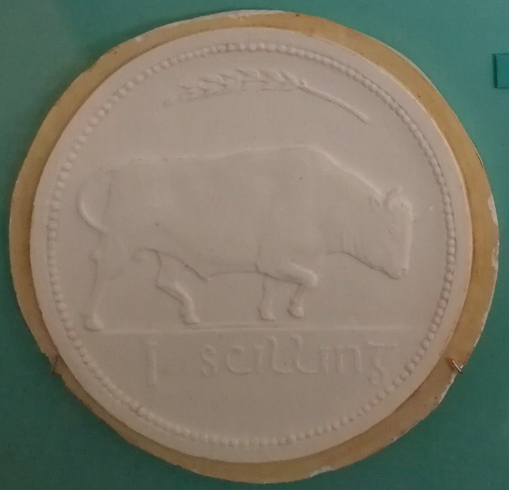 Since I just mentioned the "Airgead" collection at the National Museum (Collins Barracks) elsewhere, why not bring it up again. They also have plaster casts submitted for the coinage of the Irish Free State; here are the 1 scilling (shilling) designs ...