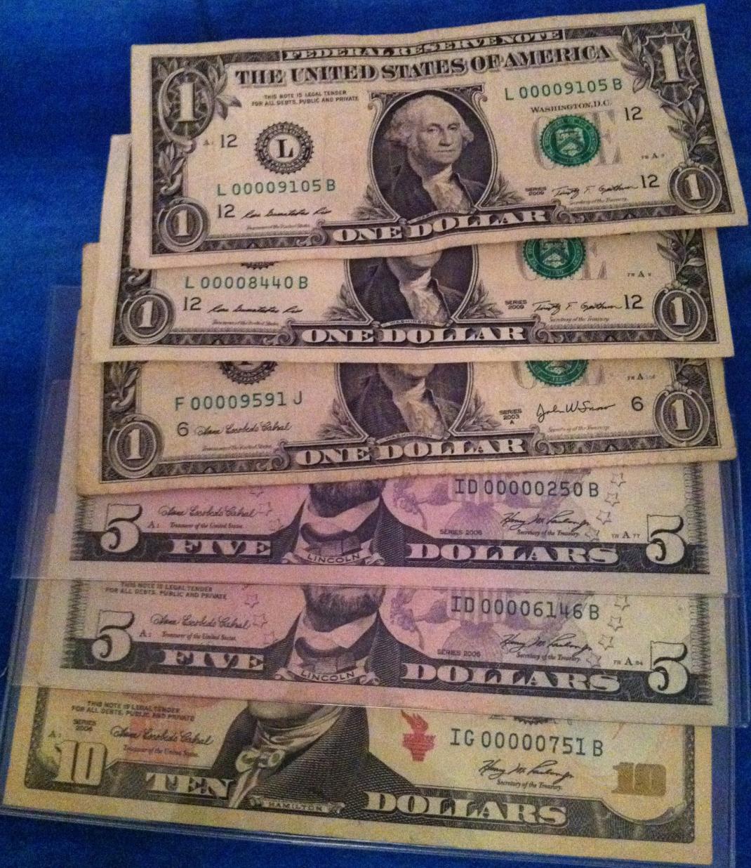 My lowest circ finds. Funny enough- I was going to post a picture on this thread when my neighbor called me and bought some $2's off me and paid in that 4 digit serial $5 so I was excited to add it to this. Nice timing neighbor lol.