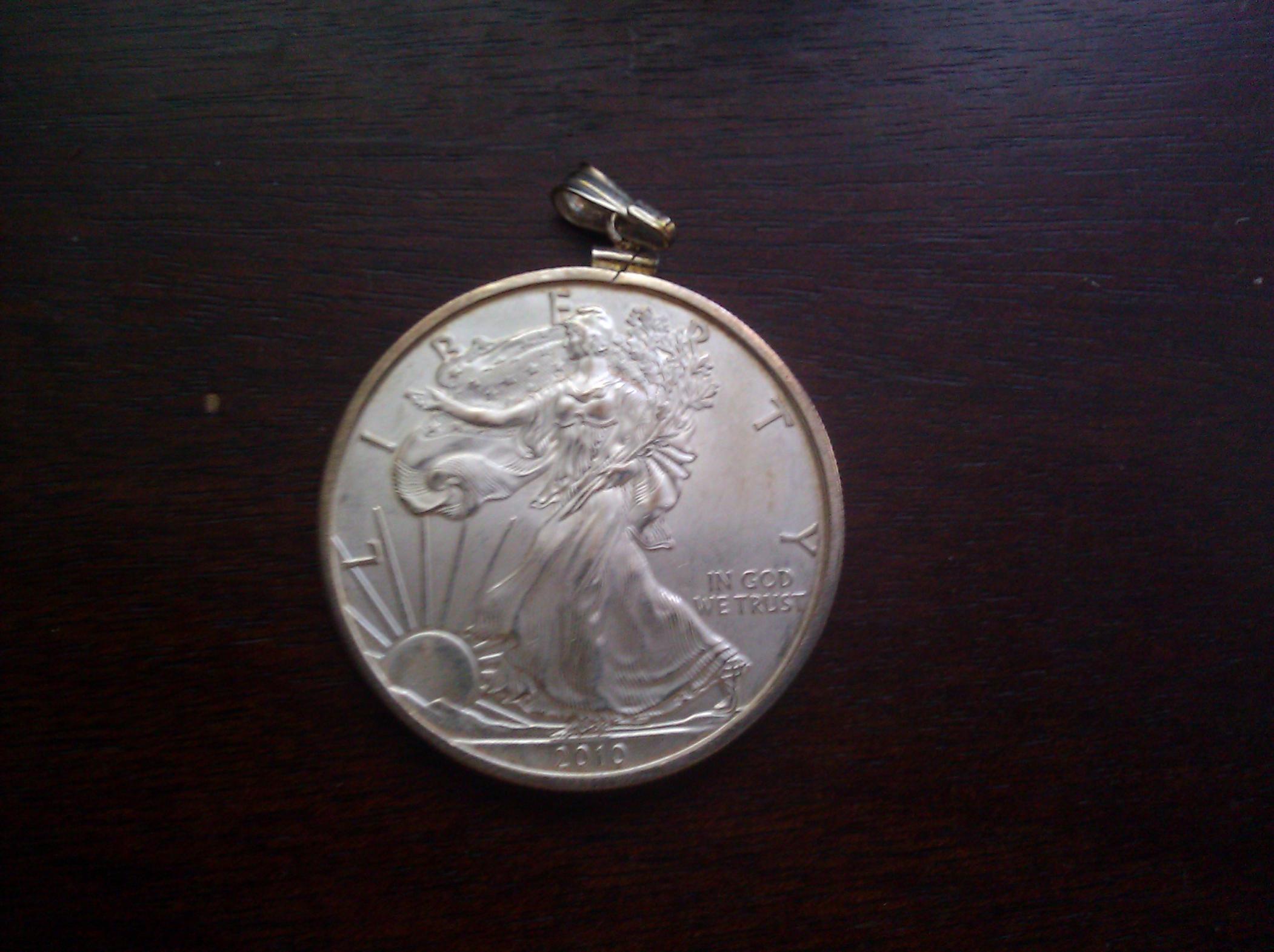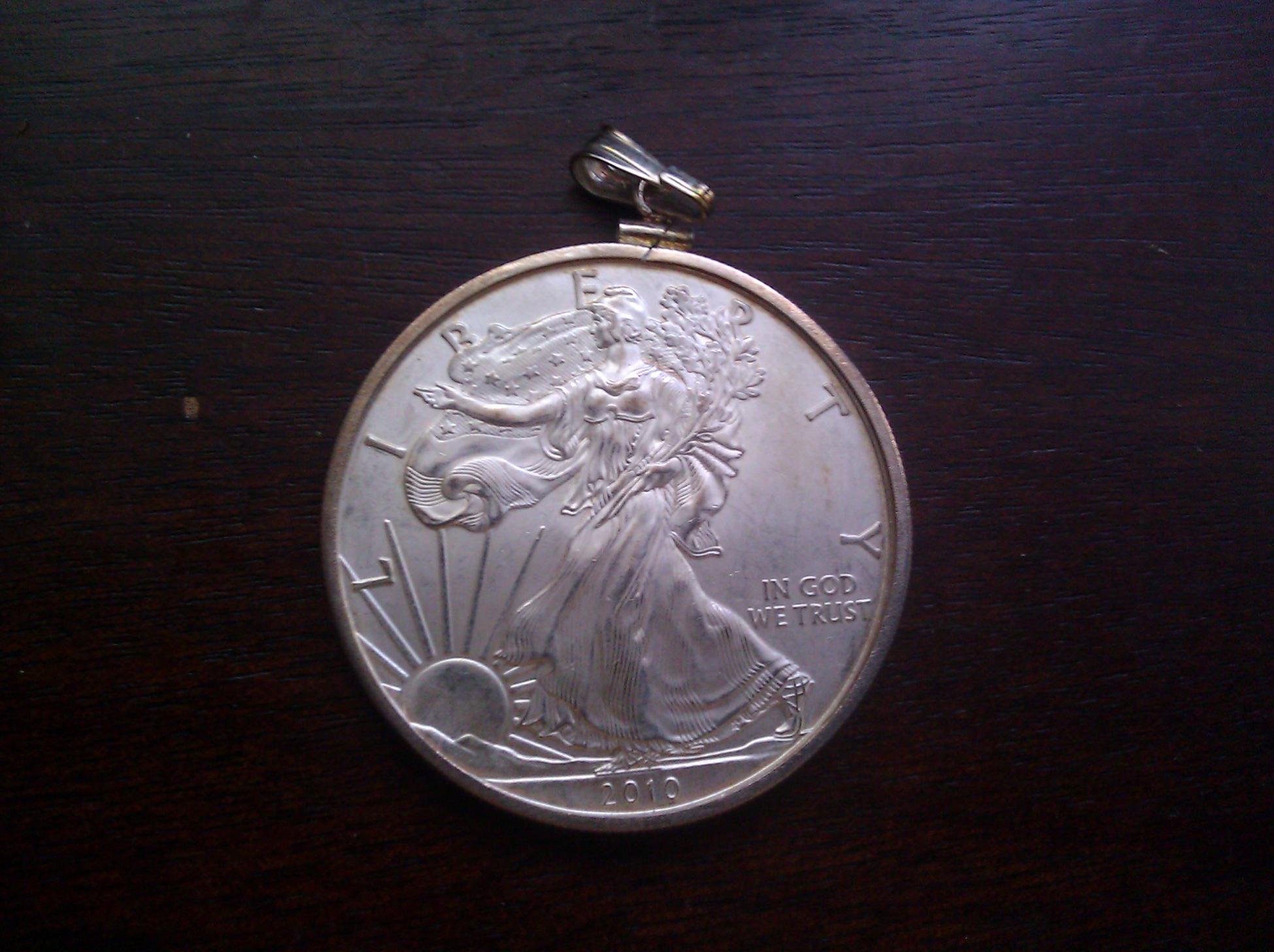 here may be another idea: http://www.jpscorner.com/airtite-ring-type-coin-holders.html They have the 'I' sized airtites with a small plastic loop at the top for hanging, displaying, or i guess wearing if you so choose. Just another idea, but i say just wear it on the Bezel, they are cheap enough to replace if that gets too worn/tarnished/corroded