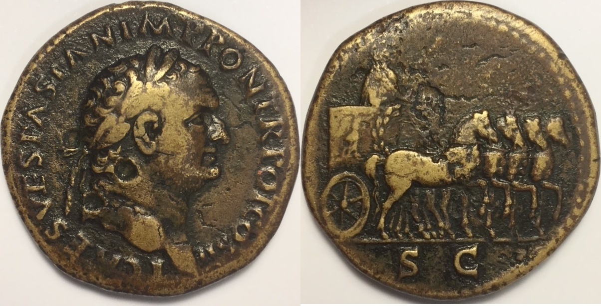 Rev: S C in exergue; Titus stg. r., with branch and sceptre, in quadriga r.