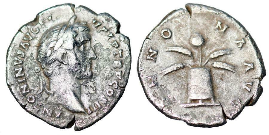 Obverse: ANTONINVS AVG PIVS P P TR P COS III; laureate head right.
