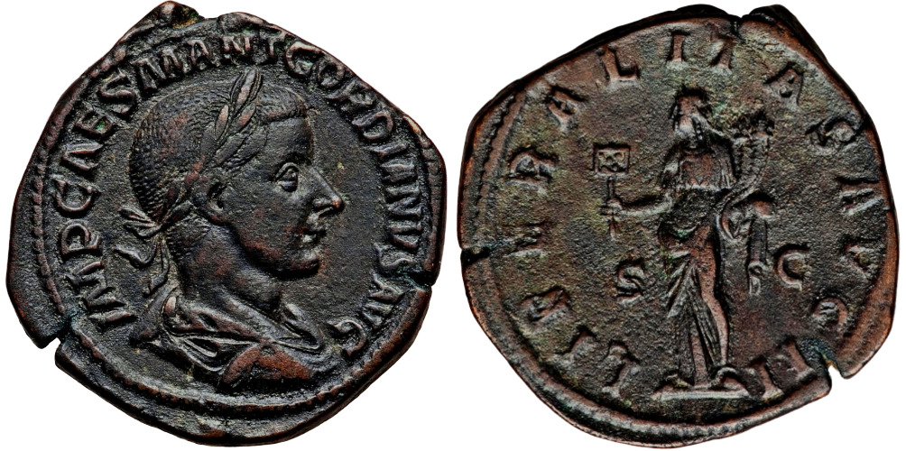 Obverse: IMP GORDIANVS PIVS FEL AVG, Laureate, draped and cuirassed bust of Gordian right.