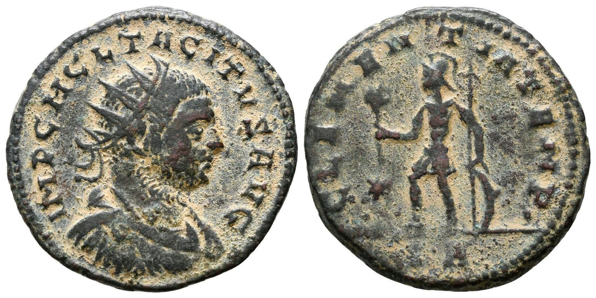 Tacitus Bil Aurelianus Serdica Obv. IMP. C. TACITVS INVICTVS P.F. AVG. Radiate bust right Rv.PROVIDEN DEOR Providentia holding two standards facing Sol RIC 195 3.73 grms 23 mm