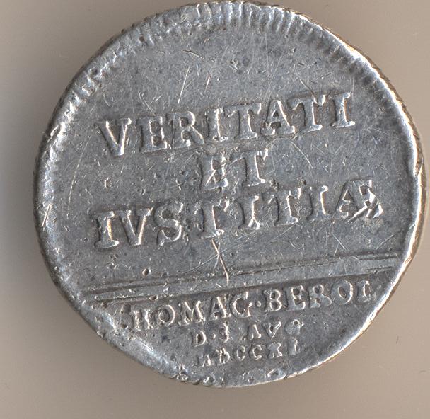 That is a coronation medal; don't know whether it's the real thing or some kind of copy though. The text HOMAG· BEROL· means Homage in Berlin. And "Veritati et Iustitiae" means something like "To Truth and Justice". The date had me confused ... "3 AUG MDCCXI", ie. 1711, did not really make much sense. Hmm, maybe the I is an L ... ah yes, 1740. That is when Frederick became king of Prussia. Here is a coronation medal, or homage medal, which looks similar to yours: http://www.deutschlandjournal.de/De...santritt_Friedrichs_II._von_Preussen_1740.pdf Compare the sizes and weights; maybe your piece is some kind of jeton or play money inspired by the medal? Christian