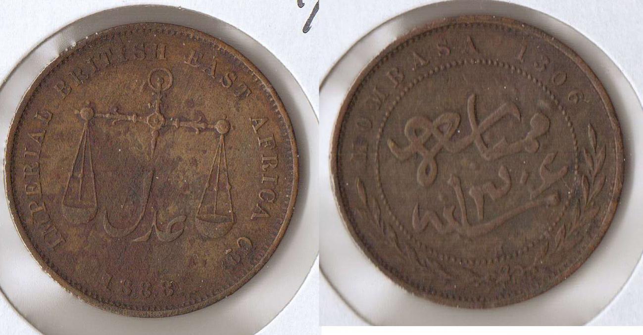 Recently I posted that I had a great day at the coin shop, getting a chance to pick through a book of world coins, with everything 50 cents each. A good number of the coins I bought were from Africa. Here are many of them. In this batch, an 1821 St. Helena halfpenny (one of my favorites because of the obscurity), 1882 Zanzibar 1 pysa, 1888 Mombasa 1 pice or 1/4 anna.