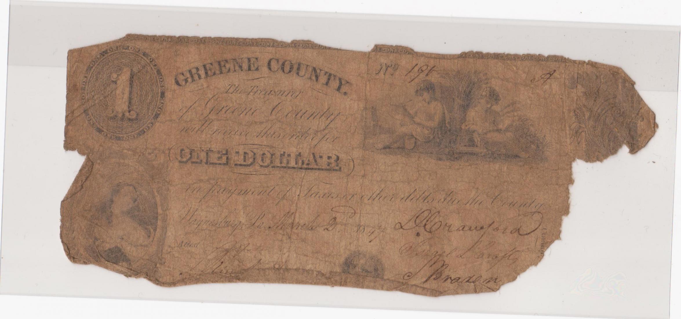 help YO YO YO I have a Greene County 1 dollar note that I can not find any info on. Can You Help Me??