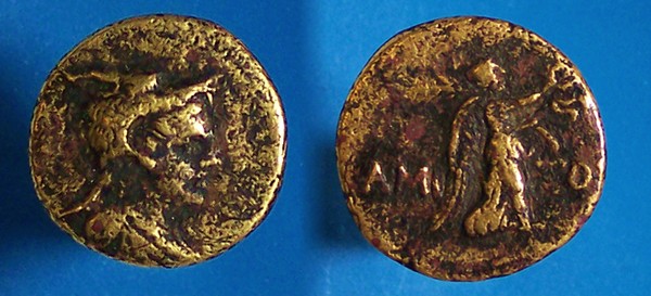 Here's number 7 I guess It's a type I have not seen many of. I really like the style of the obv. and the metal has an interesting color to it (more so in hand). Pontos, Amisos. Circa 85-65 BC. Æ 21 mm Bust of Amazon right, wearing wolfskin headdress / AMISOU, Nike walking right, holding wreath in right hand, palm over left shoulder. SNG BMC Black Sea 1218-1219; SNG Stancomb 704; SNG Copenhagen 165. Heres a shot of a nicer one http://www.wildwinds.com/coins/sg/sg3641.html "Amisos was settled c. 760 - 750 B.C. by people from Miletus, who established a flourishing trade relationship with the ancient peoples of Anatolia. Amisos came under the rule of the Persian Empire, Alexander the Great's Macedonian Empire, and then the Kingdom of Pontus. The Romans took control in 47 B.C. and Amisos remained within the Byzantine Empire after the fall of Rome. In 1200, the city was captured by the Seljuks, to be later taken over by the Ilhanlilar. Amisos today is Samsun, a city of about half a million people on the north coast of Turkey." Minted during the reign of Mithridates VI who was king of Pontus and Armenia Minor in northern Anatolia (now Turkey) from about 120 BC to 63 BC. Mithridates is remembered as one of the Roman Republic’s most formidable and successful enemies, who engaged three of the prominent generals from the late Roman Republic in the Mithridatic Wars: Lucius Cornelius Sulla, Lucullus and Pompey. http://en.wikipedia.org/wiki/Mithridates_VI_of_Pontus "According to ancient myths the delta east of Samsun was the land of the Amazons. The geographer Strabo (64 BC-21 AD) describes the Amazons as a people of female warriors. In order to shoot easily with bow and arrow they had one of their breast removed. The Amazons used men from neighboring peoples to reproduce themselves and male children were sent to neighboring peoples. The myths situate the period of the Amazons about 1200 BC." http://www.mlahanas.de/Greeks/Cities/AmisosSamsun.html