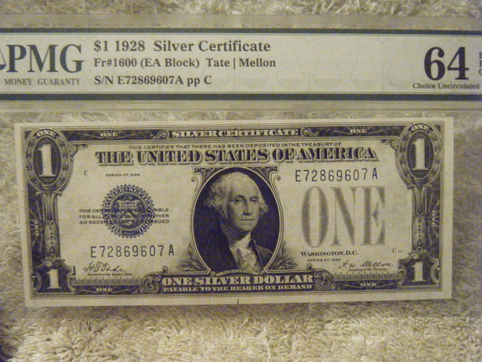 i was asking about eagles in a separate thread. learning from you fine folk as to what a problem note is and why you should not et one I heeded your advice. could I have gotten really nice notes of these years/series in au-unc for less than I paid if they were ungraded? probably. I have to say though...having graded notes and knowing what they are graded without having to send them in myself is nice. not to mention (even though I am) the fact that I DEFINATELY don't have any buyer's remorse as I might for a beat up note. (thanks again for that advice). so without any further wait allow me to introduce the very first 2 I got and own in a respectable condition. first up we have a 1928 tate/mellon graded 64 and 2nd is a 1935H granahan/Dillon graded 67. if said anything wrong or not enough please DO correct me. thanks for looking