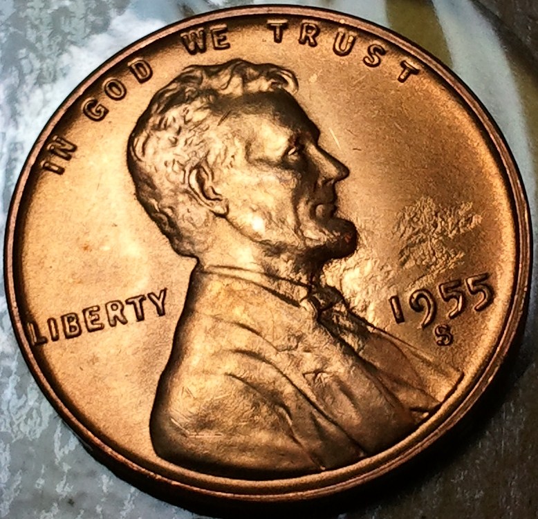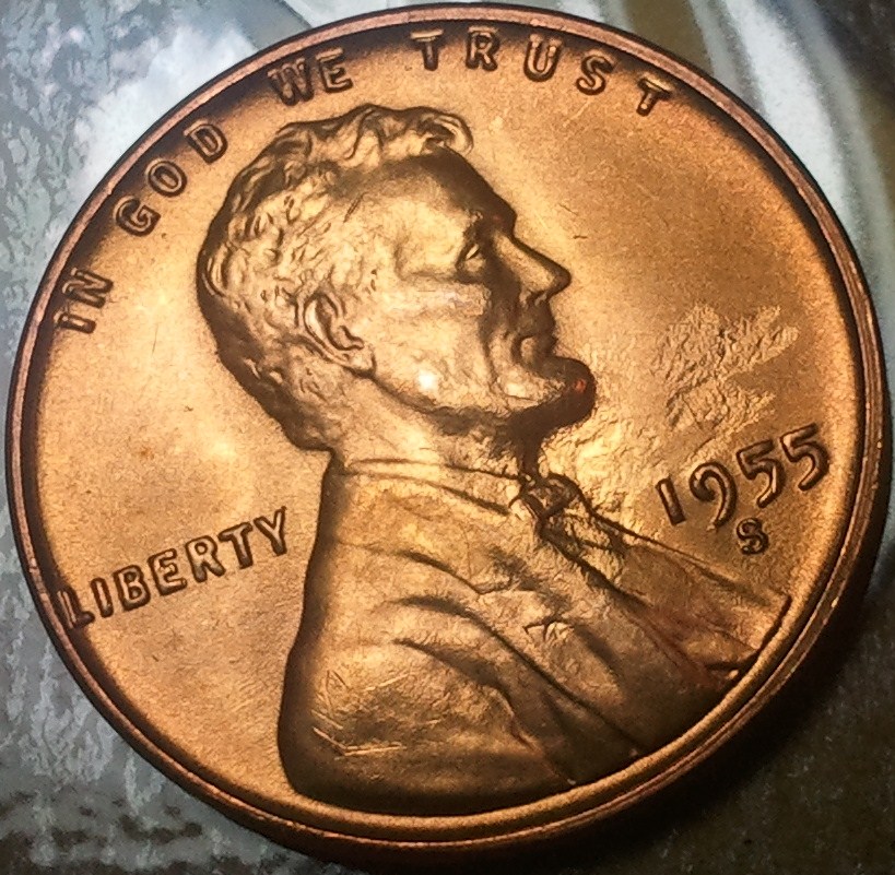 I bought an uncirculated roll of 55-S pennys today, and as we were searching my wife found this one. She studied it for a long time and wants to know if it is an error. Can you guys please help us figure this out please and tell us what you see and think.