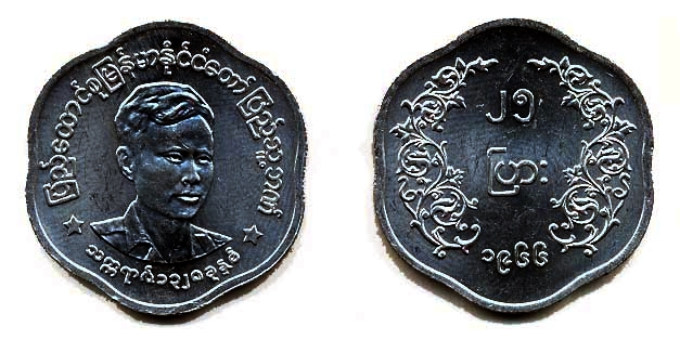 This thread piqued my interest in the Burmese script, of which I knew nothing to my embarrassment. I find it very intriguing, so I grabbed a bunch of coins and bills off eBay. Set 1, KM 38, 39, 40, and 41...