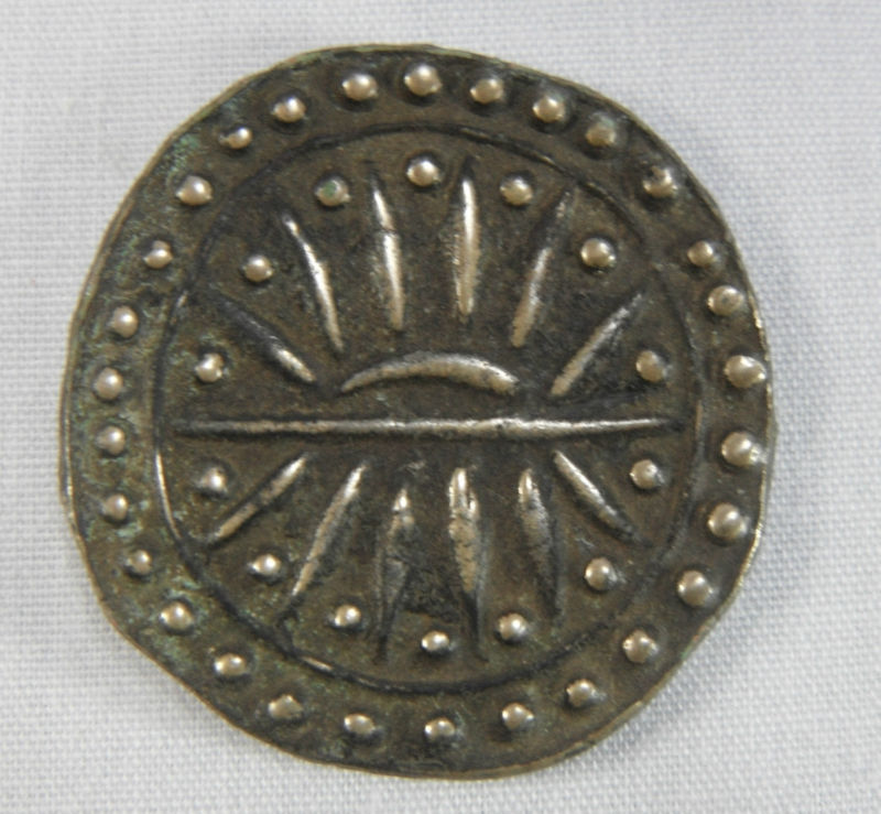It's the Ū Thông (rising sun) motive found on ancient Southeast Asian coins, so it may well be Burmese. I have no skills whatsoever in attributing these coins or determining whether they're fake or not, so I stay away from them.