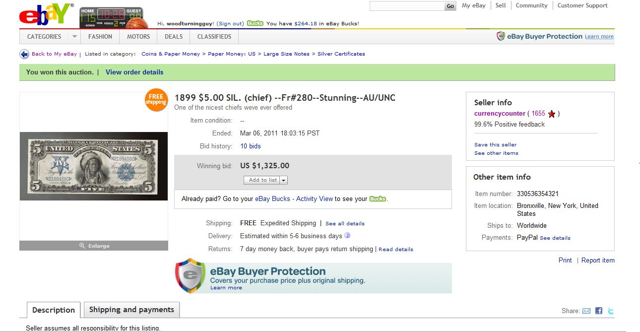 Not to mention the impact on the grade if the buyer gets it slab. If they did notes the same as coins it would come back in a body bag. From the pictures wood took a VG w/Major Issues, and sold it as a Fine+ w/Minors. This is not Woods first rodeo. He has burned a few members on the paper forum. ...and he is one of many out there!