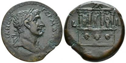 Reference. RPC III 5442.3 Dattari-Savio Pl. 69, 1466 (this coin). Issue L H = year 8 Obv. ΑΥΤ ΚΑΙ ΤΡΑΙ - ΑΔΡΙΑ СƐΒ Laureate head of Hadrian, r., with aegis Rev. L Η Draped bust of Sarapis, wearing kalathos, facing; below, eagle standing facing, head l., with outstretched wings. 11.93 gr 23 mm Note. From the Dattari collection.