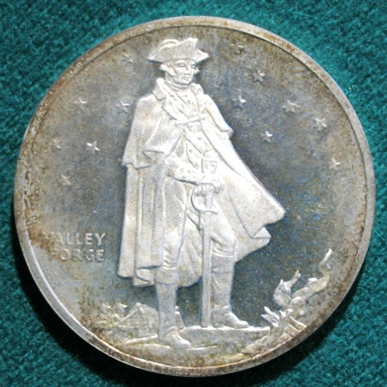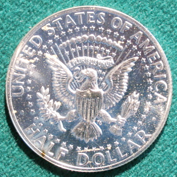 I'm glad you asked because it reminded me to take the photos. They're not the best shots because I haven't figured out what will be the best photo set-up in my new residence. The four coins are 1964 PF Kennedy's. Three of them have tiny flecks of milk spots and mild haze on both sides, but the one I'm posting is the worst. It has two carbon spots, one at 8 o'clock on the obverse and another at 7 o'clock on the reverse in addition to all of the flecks of milk spots. The 1978 medal is the first of a 13-medal series produced for the US Capitol Historical Society. It is a silver proof, 38mm and weighs 38.9gms. It was the only one of this series that was actually struck by the US Mint. The remaining 12 were produced privately. I'm really anxious to see the results of the conservation on this one. As you can see from the photos, it's in pretty bad shape despite being in its original presentation case all these years. Chris