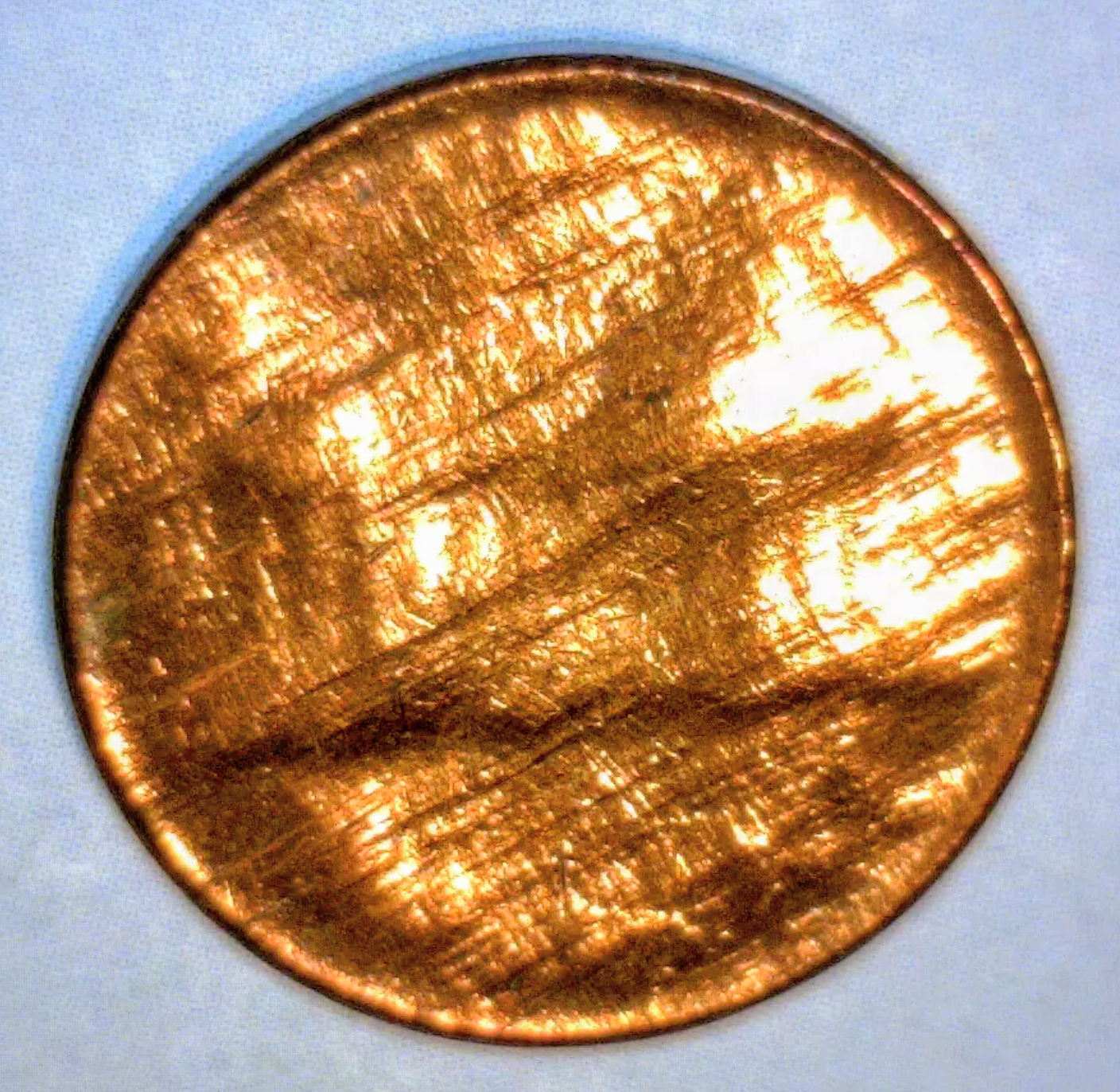 This copper cent weighs 3.10 grams. Though it appears as a split after strike error, or an altered coin, what you see is the following...