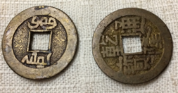 This is a really cool thread. People coming up with ideas which are either right on or shot down. The coins with the square holes are Chinese. The characters on the pictures at far left and far right are Mongloian script. The center ones are traditional Chinese characters. All images need to be rotated 90 degrees to the right. Not sure on the Mongol coins, they might need to rotate the other way. I can read the Kanji script on the Japanese coins in the OP, however I can not read the ones above. numista.com or zeno.ru are good places to help identify such coins.